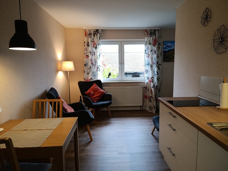 Offen gestaltetes Appartement „Neukastell“ – Doppelzimmer mit Bad und kleiner Wohnküche