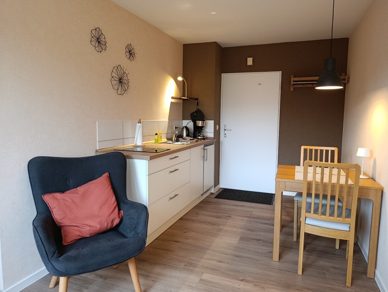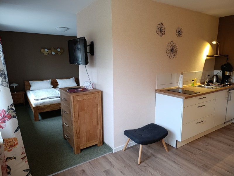 Offen gestaltetes Appartement „Neukastell“ – Doppelzimmer mit Bad und kleiner Wohnküche